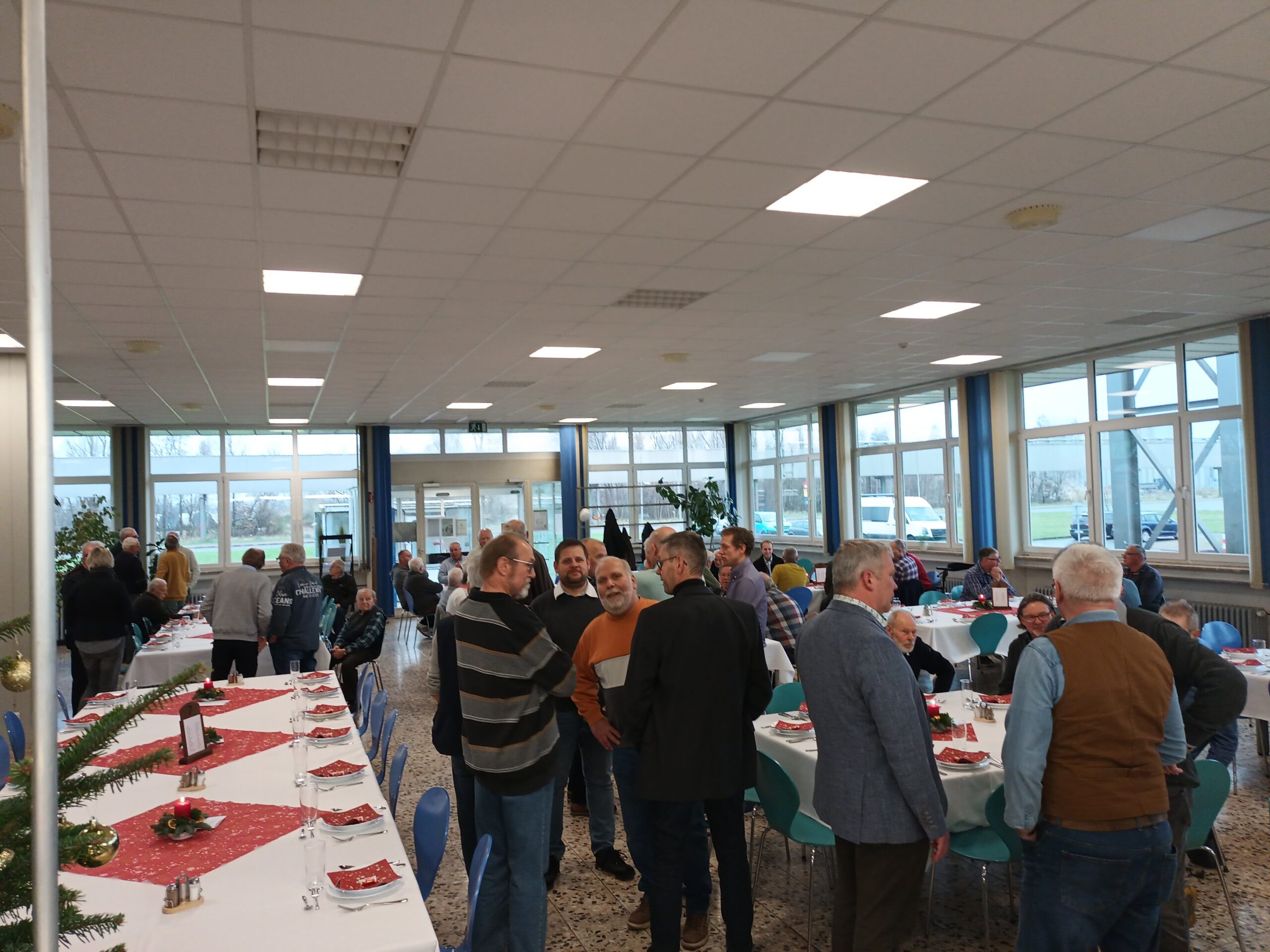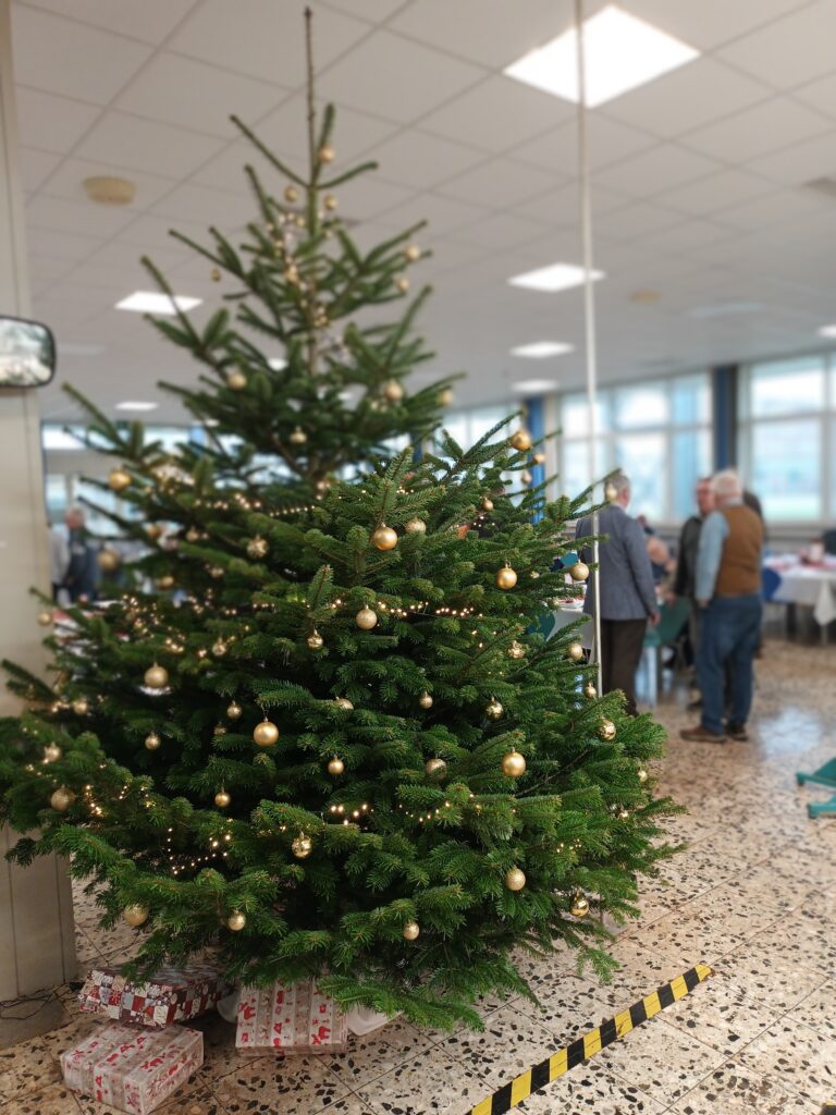 Wie jedes Jahr fand am Samstag vor dem ersten Advent unsere Rentnerweihnachtfeier in der Kantine der AOS statt. 75 Rentner und Rentnerinnen trafen sich in vorweihnachtlicher Atmosphäre. Der Älteste anwesende Rentner war 89 Jahre alt, zusätzlich waren von jeder Abteilung aktive Vorgesetzte an den Tischen vertreten.